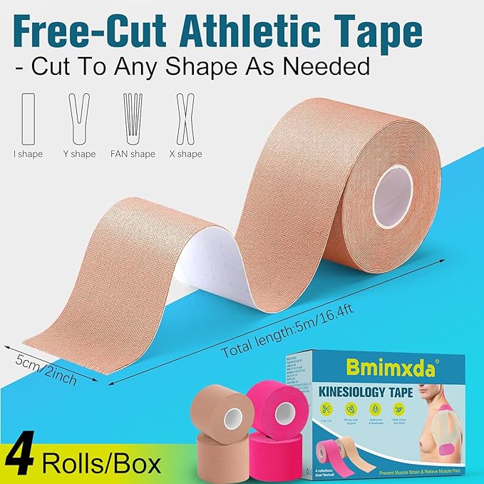 - 【4 Rolls Configuration 】Package Includes 4 Rolls Of Kinesiology Tape, With 2 Rolls Of Pink Athletic Tape And 2 Rolls Of Skin-Tone Tape To Match Different Usage Preferences. Each Roll Measures 5cm Wide And 5m Long (Equivalent To 2 In × 16.4 Ft), Making It Suitable For Adults During Long-Term Sports Use Or Post-Exercise Recovery.