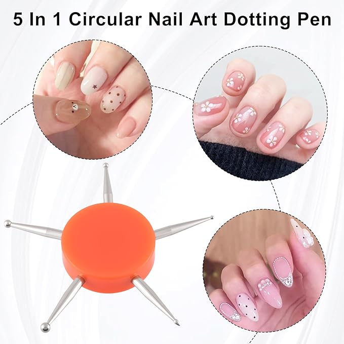 - You Will Get: The package contains 1pcs 5-in-1 nail dotting tool in orange, suitable for beginners learning nail art or professionals needing reliable tools for salon work