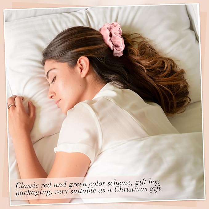 - Package Includes: You will receive 4 silk scrunchies, red and green classic Christmas combination, very suitable as Christmas accessories or Christmas gifts. Can match any hairstyle during the day and prevent hair from rubbing at night