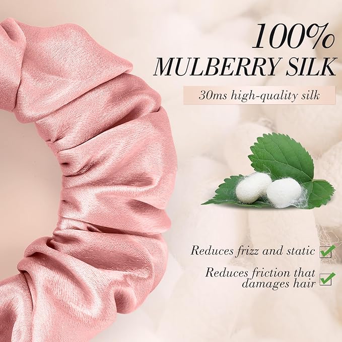 - Mulberrry Silk: Our silk scrunchies are formulated with the 19 momme mulberry silk, silk smooth surface, shiny, comfortable and gentle on hair, prevent hair being damage