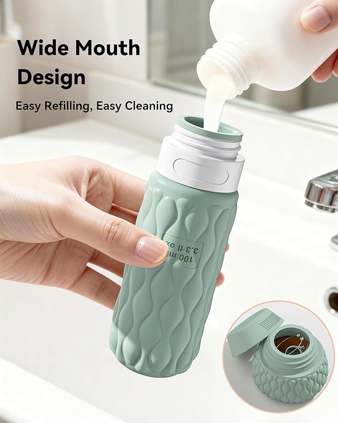 - 【Carry-On Approved Travel Size Toiletries】The 100ml travel bottles for toiletries and 50ml travel containers for toiletries meeting TSA Approved with travel hassle-free. Perfect for shampoo, conditioner, creams, lotion, choose the container to fill according to your needs!