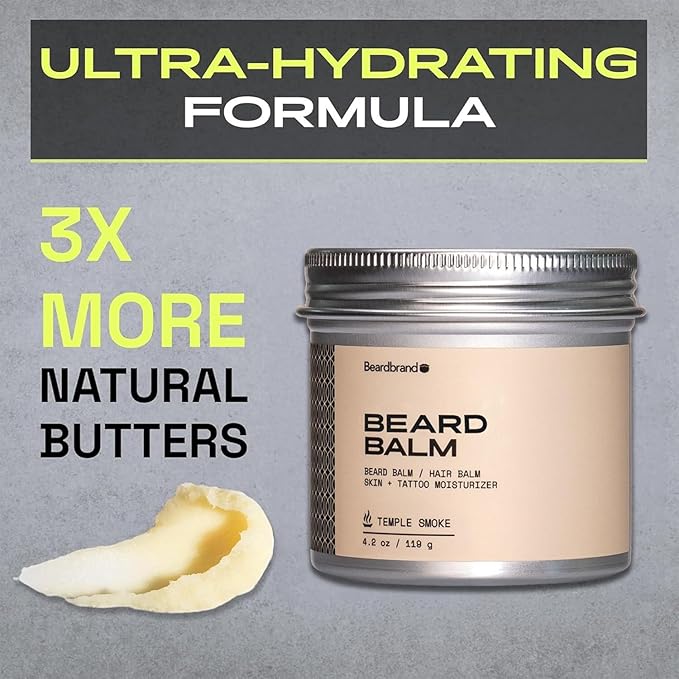 Beard Balm for Men - Travel Pack - Supports Thicker Beard, Temple Smoke Scent, Natural Ingredients Butter Reduces Dryness & Enhances Look - 4.2 oz