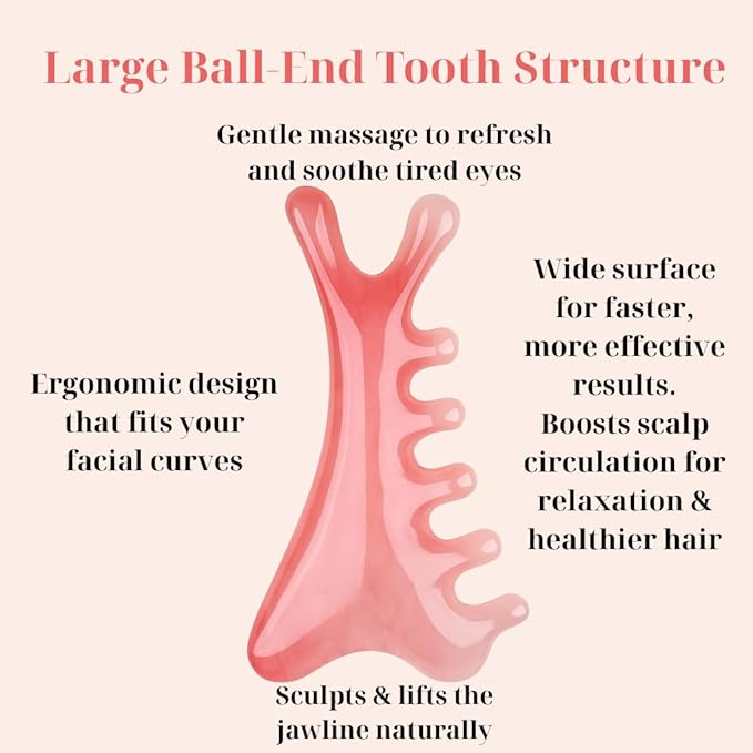 Pink Gua Sha & Massage Comb Set – Massage Tool for Neck, Eye, and Head Massage – Stress Relief, Lifting, and Meridian Therapy Tool for Relaxation – Perfect Self Care Gift for Women & Men