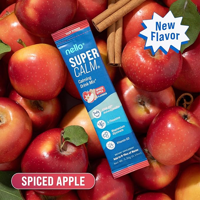 - REFRESH, RELAX, REFOCUS: Nello's Supercalm supports you in effortlessly enjoying relaxation and focus anytime, anywhere. Savor the vibrant flavors of Spiced Apple in convenient, on the go packets or the multi-serving canister while promoting your body's vitality and equilibrium.