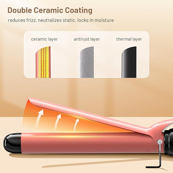 - 【Ceramic Coating for Hair Care】: Ceramic curling iron with high-quality ceramic enamel coating—smooth, non-sticky, reduces tangles, breakage and frizz by 60%+. Even heat conduction prevents scalding the hair, leaving hair smooth and shiny.