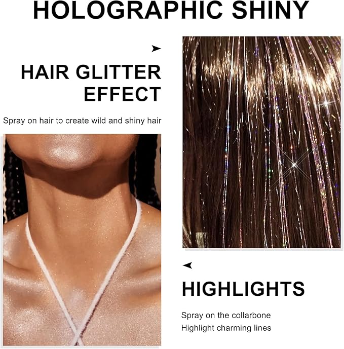 - 【Versatile for Makeup, Crafts & More】Beyond makeup, this holographic glitter spray works for DIY crafts, festival decor, nails, and even kids’ art projects. Transform costumes, photoshoots, or holiday decorations with its ultra-fine, resin-based glitter that’s perfect for any creative vision.