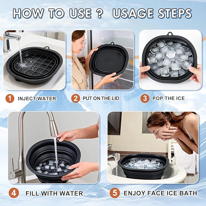 - VERSATILE DESIGN: Collapsible silicone bowl with built-in ice tray perfect for at-home facial ice therapy and cold plunge treatments
