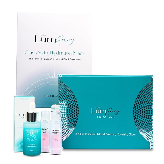 LúmEnvy Skincare Bundle – The Glow Between™ | Set of Brightening Face Serum with PDRN, Two Glowpins Precision Exfoliators & 5 Hydrating Masks | Radiant, Luminous Skin Care