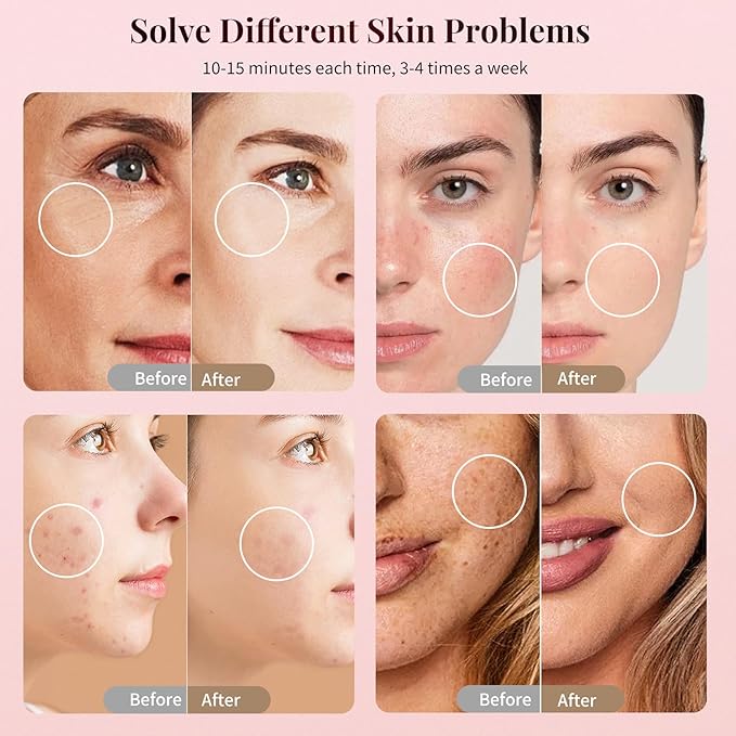 - 【3 Customizable Modes with 5 Adjustable Levels】:Tailor your session to your specific needs with 3 distinct modes: Red+NIR mode (Wrinkles Treatment), Blue mode ( Acne Treatment), and Mixed mode (Red+Blue+NIR). Each mode features 5 adjustable intensity levels, providing a personalized, comfortable experience suitable for all skin types. Whether you're targeting Wrinkles or Acne breakouts, TOFEKIA offers the perfect setting.