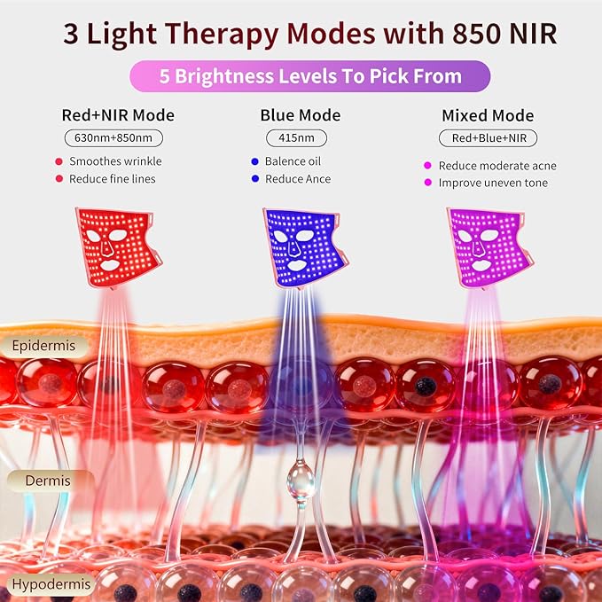 - 【Triple-Color LED Light Therapy for Skincare】: Experience professional-grade skincare at home with the TOFEKIA LED Face Mask. This powerful device combines 630nm Red Light, 415nm Blue Light, and deep-penetrating 850nm Near Infrared Light. This unique spectrum works synergistically to help improve the appearance of Acne and Wrinkles, while the integrated eye mask shields your eyes from the light, ensuring a safe and comfortable treatment.