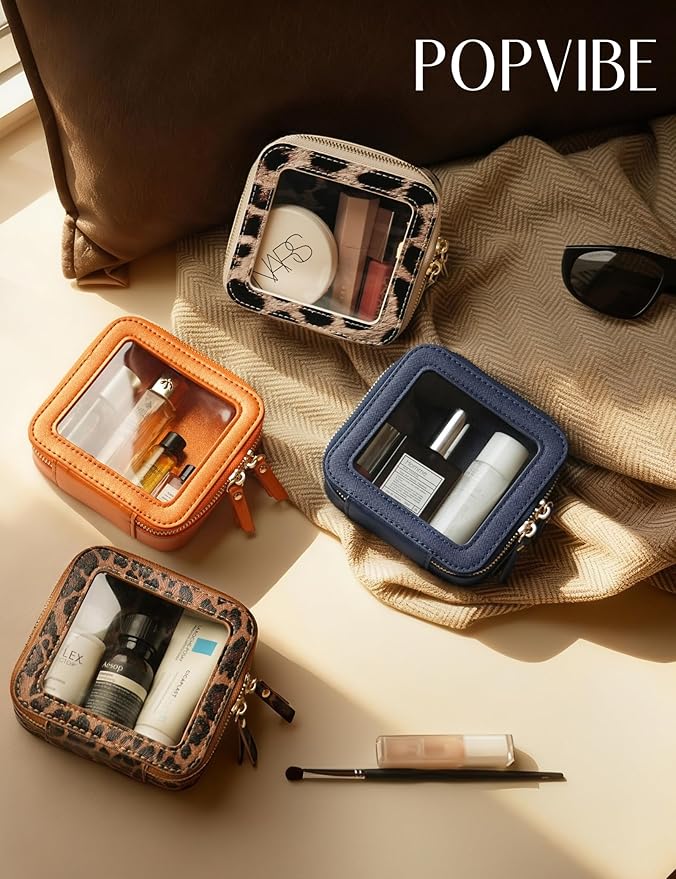Popvibe Clear Makeup Bag Travel Cosmetic Case Transparent Toiletry Bag with Zipper, Portable Make Up Organizer Traveling Compact Car Bag for Essentials