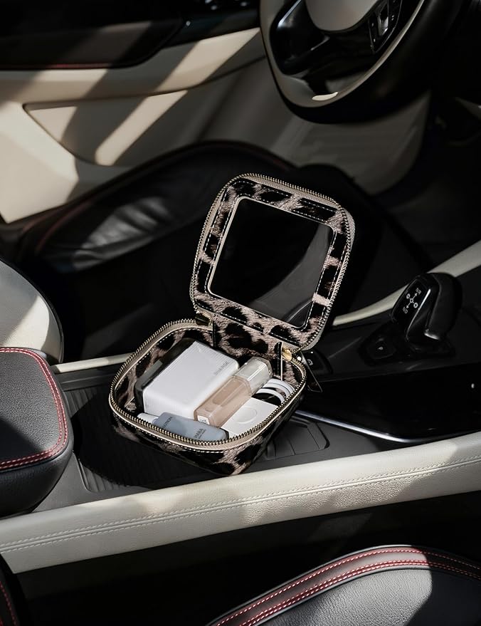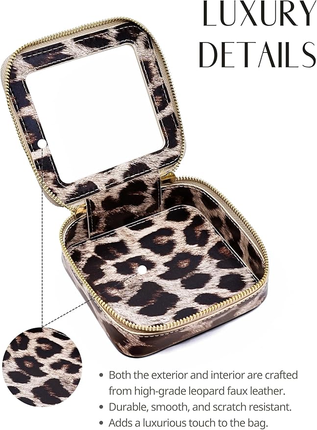 - [Mini but Mighty] – The leopard mini makeup bag measures 5'' x 4.7'' x 2'' (12.7cm x 12cm x 5cm), perfect for holding daily mini essentials including lip balms, hair ties, jewelry, Air Pods, charging cords and medications. Slip it into your purse, everyday tote or car console for easy access to your must-have items.