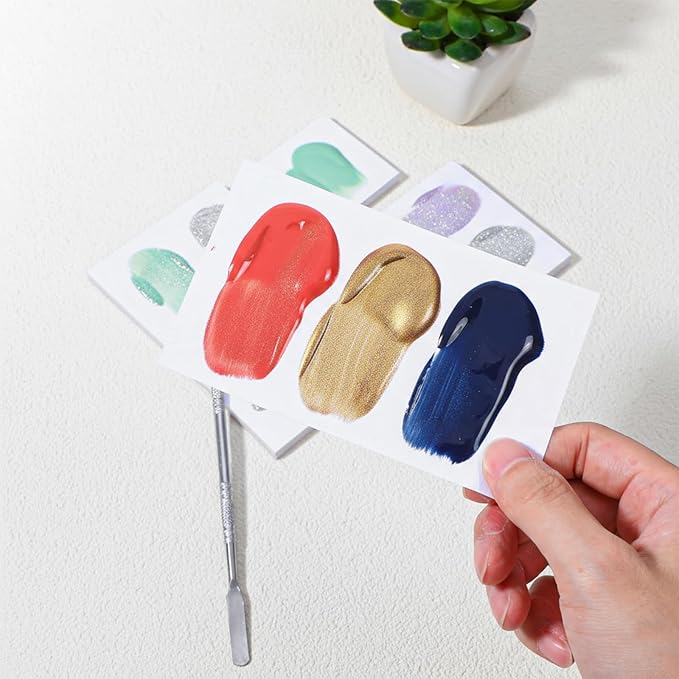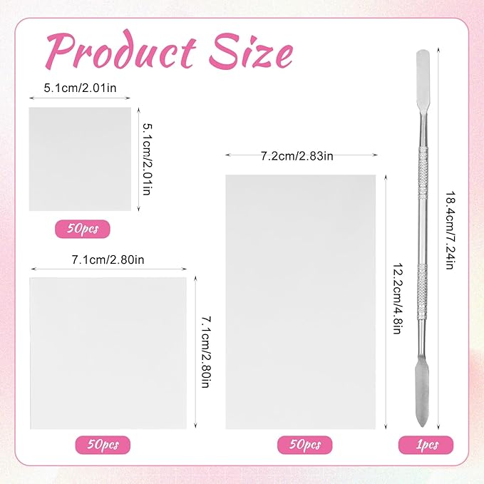 - 【Three Sizes for Precision】Get versatile sizing options with large (4.8”x2.83”) , Medium (2.8x2.8'') and small (2.01”x2.01”) sheets. The stainless steel mixing tool included is durable and lightweight, offering perfect portability for home manicures, salon work, or travel nail art.