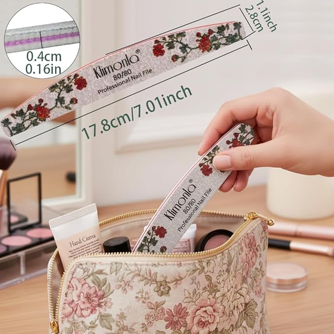 - These Floral Professional Nail Files feature charming floral designs paired with 80/100/150/180/240 Grit variations: 80,100 for shaping thick nails, 150,180 for smoothing edges, 240 for polishing—professional-grade performance wrapped in a stylish, eye-catching design.
