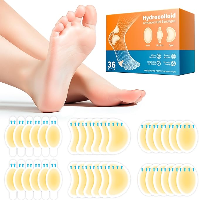 36pcs Hydrocolloid Gel Blister Bandages Pads Waterproof Adhesive Blisters Bandages - Blister Pads for Heel, Foot, Toe, Feet - Gel Blister Chshions for Prevention & Recovery (Variety Pack, Count, 36)