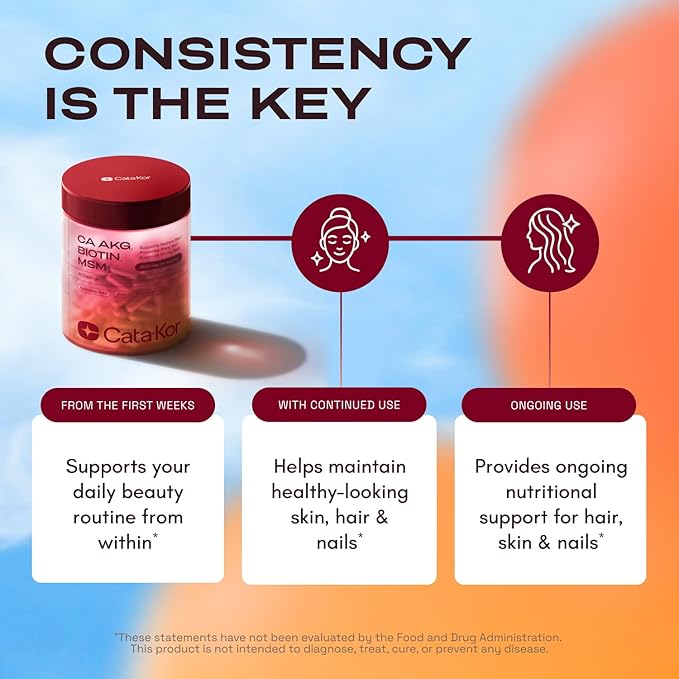 - CATA-KOR BEAUTY COMPLEX formulated with Calcium AKG, MSM, Hyaluronic Acid, Biotin, Zinc supplements to support skin elasticity, promote shiny hair & strong nails.*
