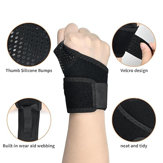 - [Innovative & User-Friendly Design]: Equipped with a built-in webbing for easy, one-handed wearing, this brace is designed for convenience. The free-thumb design and strategically placed silicone bumps ensure maximum mobility without sacrificing stability, preventing the brace from slipping during movement.