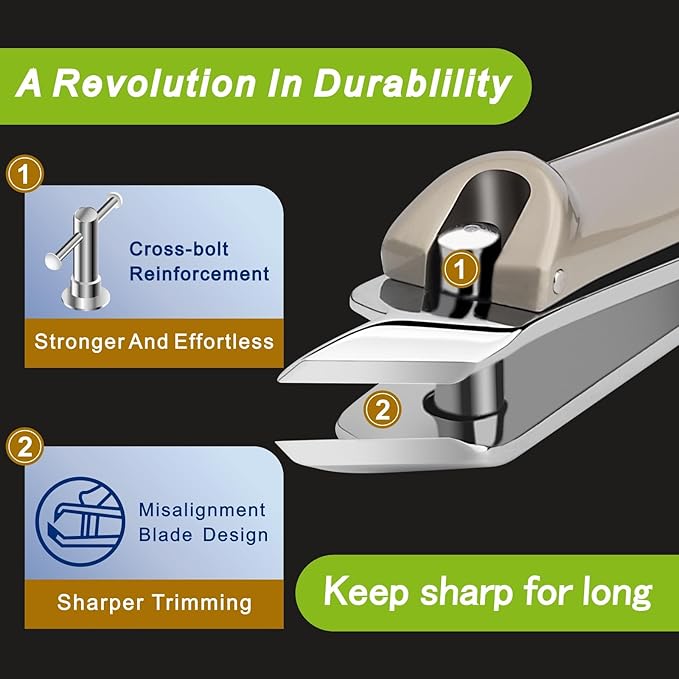 - Precision Cutting: The nail trimmer sharp cutting blades effortlessly trim thick tough toenail and fingernail with precision, ensuring a clean and smooth finish. It can achieve the desired nail length without any jagged edges or uneven cuts.