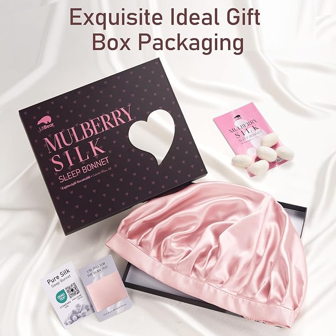 - ✅ 22 Momme 100% Mulberry Silk Bonnet: 100 percent made from the softest 6A pure mulberry silk and OEKO-TEX certified, ensuring it is safe for health and the environment. Litbear real silk sleep bonnet for curly hair is breathable, softer, glossier, redefining comfort with daily hair care without sweating during sleeping. It comes with safer chemicals.