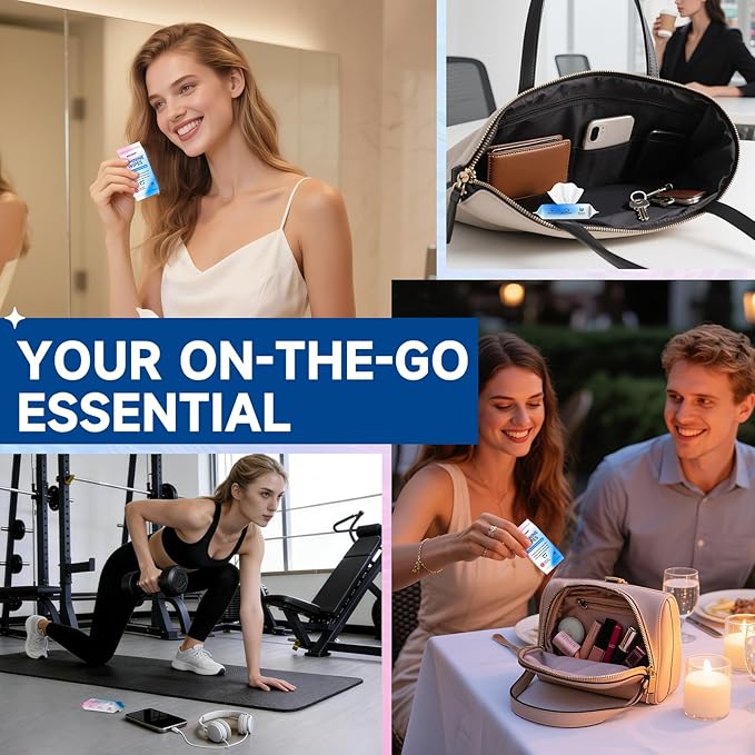 - Compact & Portable Mini Pack:Our feminine wipes come in a convenient mini packThis compact design is perfectly sized for pocket, purses, gym bags, or travel, ensuring you can maintain freshness and discreet hygiene anytime, anywhere.