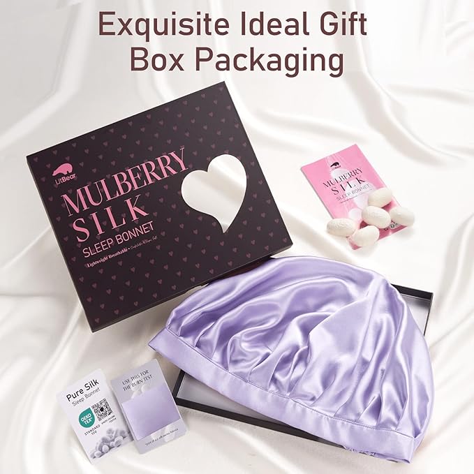 - ✅The Perfect Gift for Everyday Use: The LitBear pure silk sleep bonnet comes with an exquisite gift box, making it perfect for women, girls, and teenagers—or just to spoil yourself! Wear it for sleeping, housework, yoga, travel, or makeup to help keep your hair healthier and brighter.