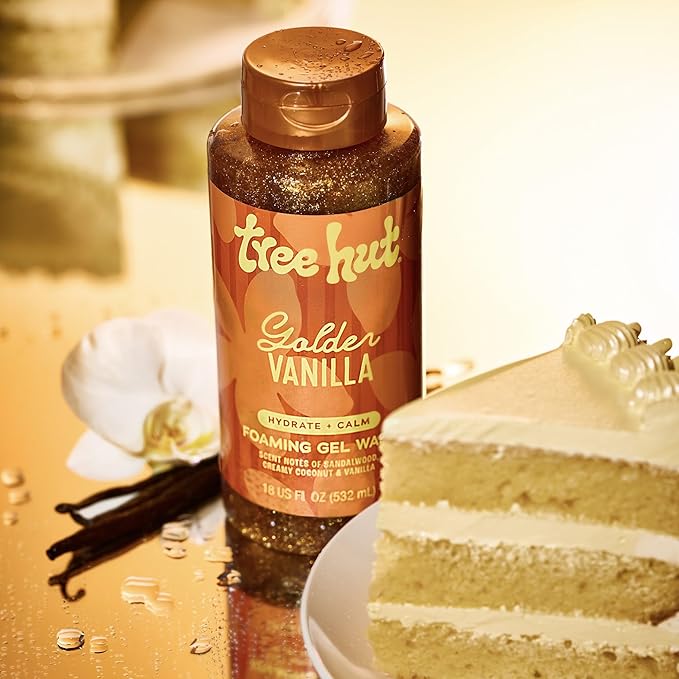 Tree Hut Golden Vanilla Foaming Gel Wash, Hydrating & Moisturizing Body Wash with Shea Butter & Natural Oils, Gentle Cleansing for Soft & Smooth Skin, Body Cleanser for Self-Care, 18 oz