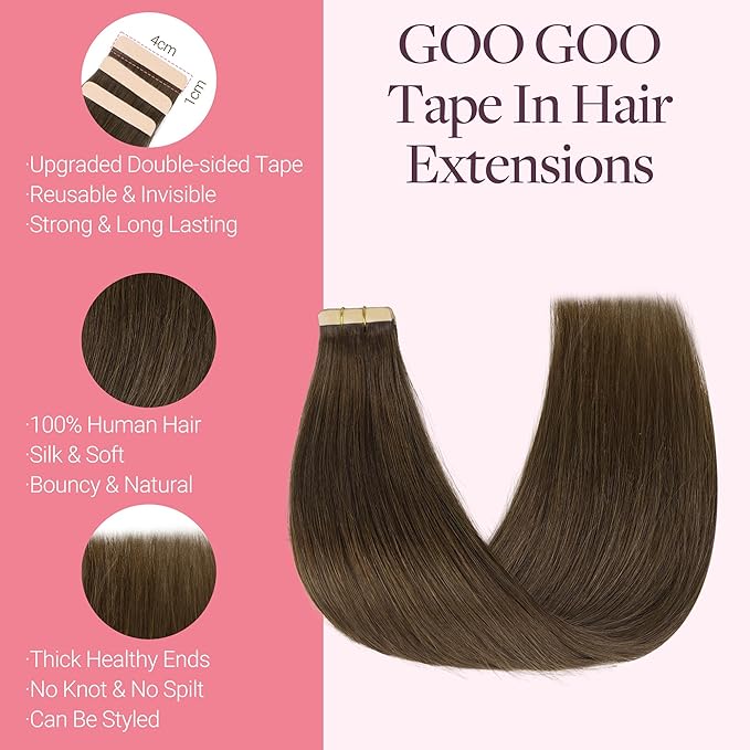 - Heat-Styling & Care Tips: GOO GOO tape in extensions are heat-safe up to 250°F. Curl or straighten as desired. Wash gently with mild shampoo in lukewarm water, then air dry. Keep them smooth, shiny, and ready for any look.