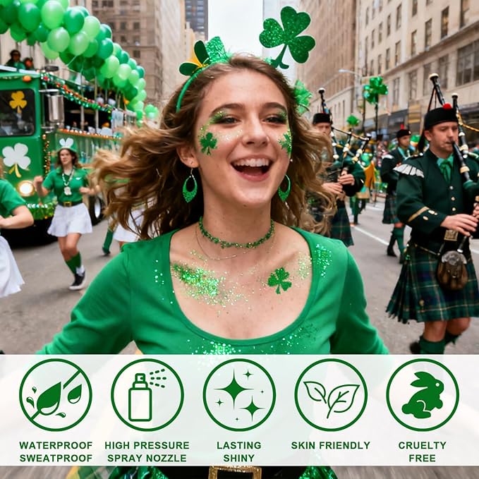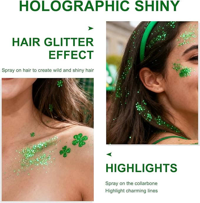 Hair and Body Glitter Spray, 1PC St Patricks Day Glitter Hairspray Dry Powder Makeup for Clothes, Festival Rave Prom Loose Sparkle Powder,Holographic Ultra Fine Resin Glitters for Crafts (1PC Green)