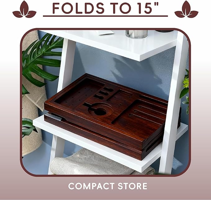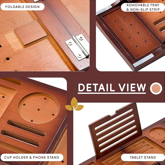 - Space-Saving & Easy Storage - When your spa moment is over, convenience continues. This bamboo bath tray features a clever foldable design, allowing it to lie flat or be stored upright in narrow spaces. It easily tucks away beside your toilet or in a cabinet, making it the perfect space-saving tub caddy tray for bathtub for even the coziest of bathrooms. Enjoy luxury without sacrificing precious storage space.
