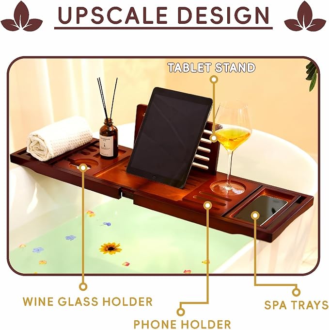 - The Perfect Luxury Gift & Quality Guarantee - An exquisite gift for any occasion, this bamboo bathtub tray makes a memorable housewarming, anniversary, Mother’s Day present and Valentine's Day gift. We stand behind the superior craftsmanship and durability of our bath tub tray wood product and provide 24-hour service. If you have any questions, please feel free to contact us at any time.