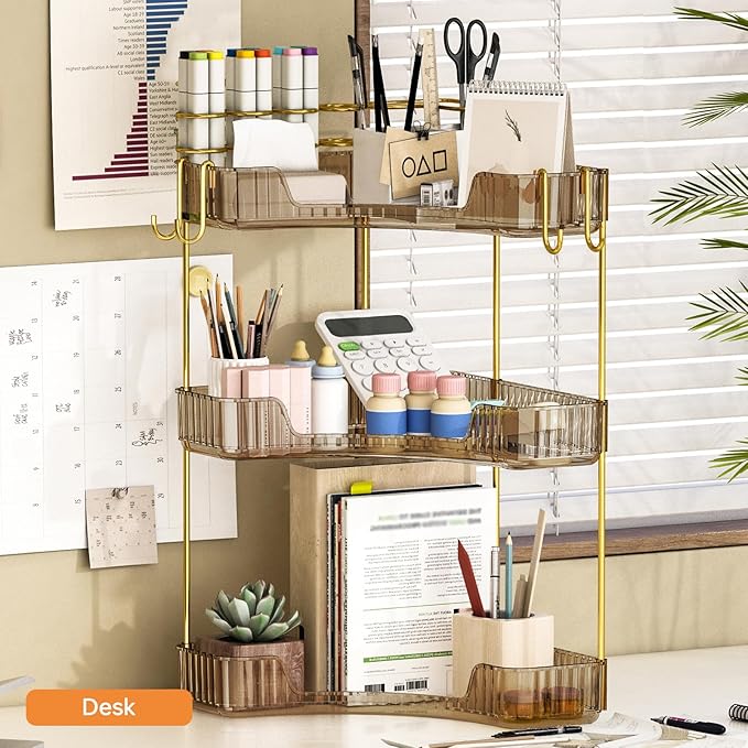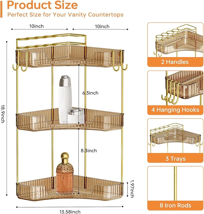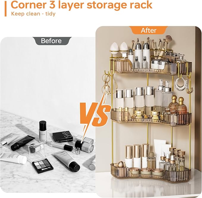 - 🎯【 Maximize Corner Space】: Adopting an innovative 90 degree right angle design, it perfectly fits the idle corners of the bathroom and dressing table, turning the cluttered countertop into a clean and orderly storage space, instantly increasing 100% of the effective storage area.