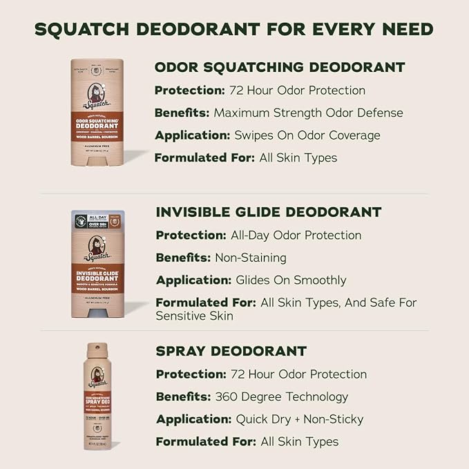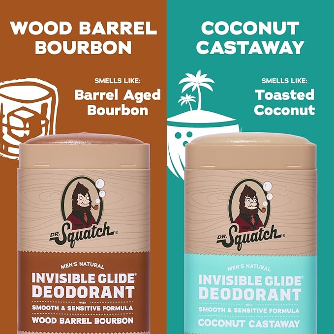- NO STAINS, NO STREAK: Dr. Squatch 2-Pack Invisible Glide Deodorant goes on smooth and stays invisible. No marks, no residue, and no stains on your favorite shirts. Just clean, all-day freshness