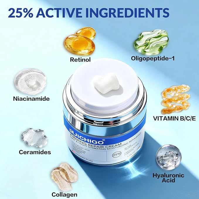 - Retinol, Collagen & Hyaluronic Acid – Anti-Aging Power Trio: This anti-aging face and neck firming cream combines retinol, collagen, and hyaluronic acid to help reduce the appearance of wrinkles, fine lines, and crepey skin on neck and décolleté. Retinol supports collagen renewal, hyaluronic acid locks in deep hydration, and collagen enhances skin firmness—helping improve skin texture, smoothness, and tone for visible lifting and firming results across face, neck, and chest.