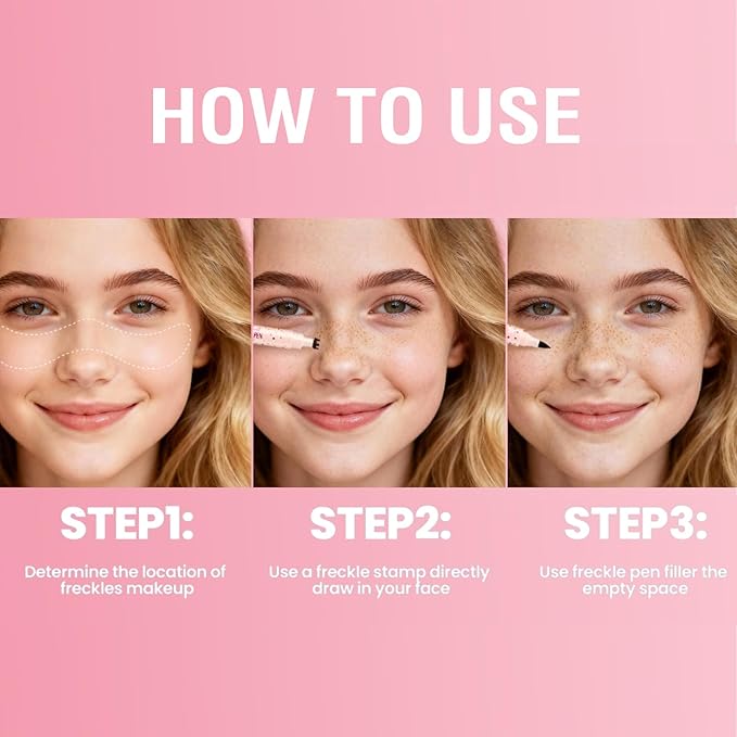 - 2. 1-Press Sun-Kissed Freckles: Instant Natural Glow No pro skills required with this freckle pen! Press the multi-prong silicone stamp once, and you’ll get evenly spaced, lifelike freckles that mimic a real sun-kissed radiance. This freckle pen skips messy brushes or stencils — just instant, natural-looking freckles in seconds. Whether you want a faint summer flush or noticeable charm, this freckle pen delivers seamless, realistic results with zero hassle.