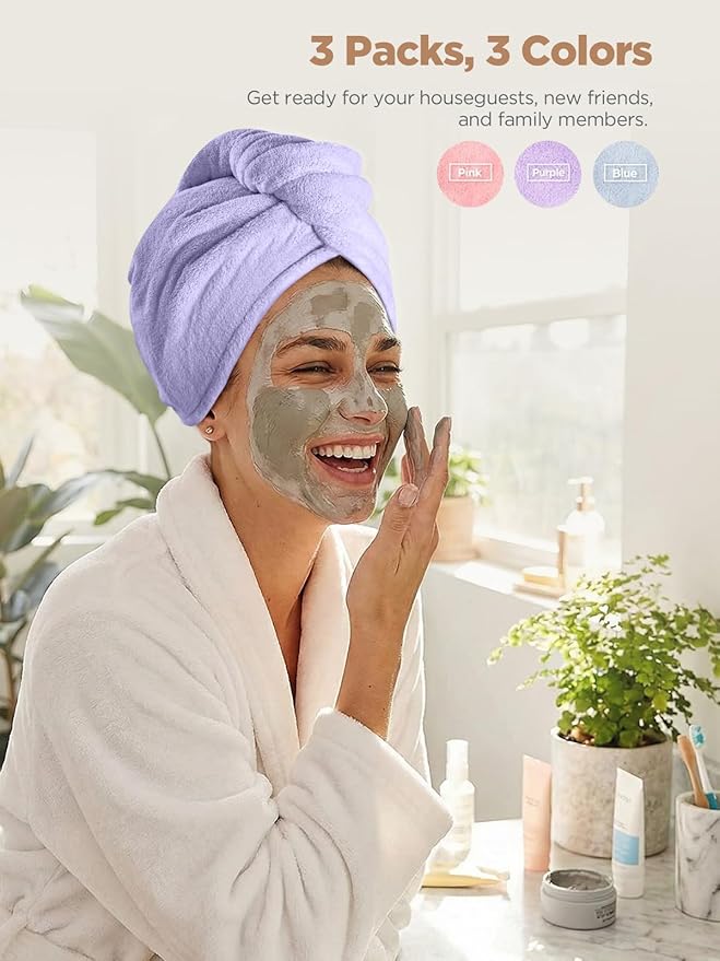Hicober Microfiber Hair Towel, 3 Packs Hair Turbans for Wet Hair, Drying Hair Wrap Towels for Curly Hair Women Anti Frizz (Pink,Blue,Purple)