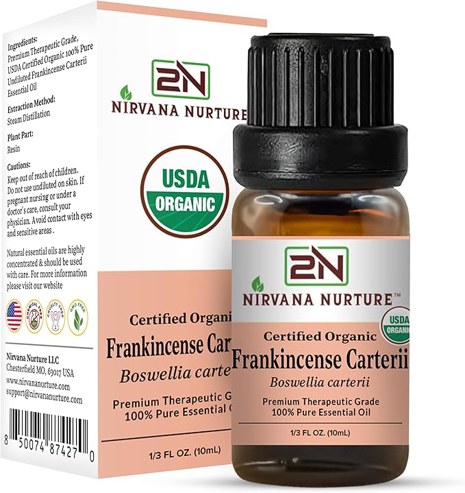 - UPLIFTS MOOD, CALM & RELAX: Nirvana Nurture Frankincense Carterii essential Oil uplift mood, help calmness and encourage relaxation. It helps refresh the mind, unwind the body, and support restful sleep. Dilute 3–4 drops in a carrier oil for a soothing massage, or add 8–10 drops to warm bath water to enhance your bedtime routine.