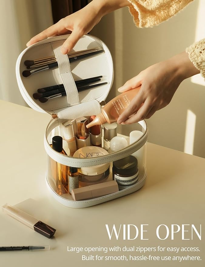 • [Travel-ready Size] – The clear makeup case measures 8 x 5.5 x 6 inches (20.3 x 14 x 15.3 cm), remaining compact for trips yet roomy enough for daily essentials.