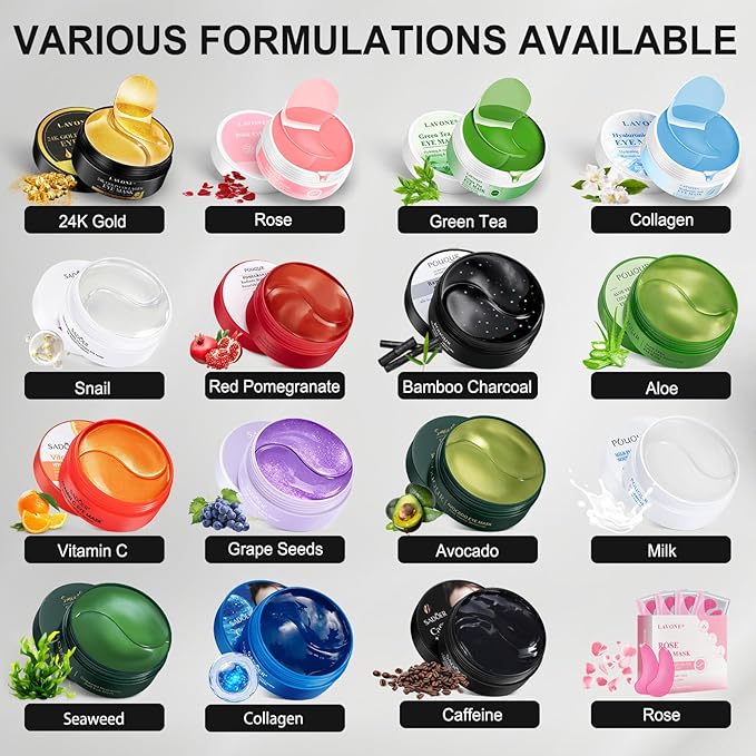 - [Nourishing & Anti-aging] - Under eye mask contain collagen and bamboo charcoal extract, can deeply repair the eye skin, improve skin complexion, rejuvenate skin and make the skin firm and smooth, resolves skin dark circles, puffiness, lines, dullness and wrinkles. The eye patches relieves the daily pressure on skin, will give a glow to your skin.