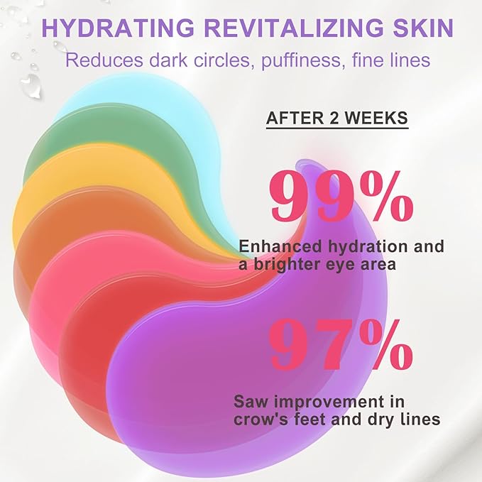- [Nourishing & Anti-aging] - Under eye mask contain collagen and grape seeds extract, can deeply repair the eye skin, improve skin complexion, rejuvenate skin and make the skin firm and smooth, resolves skin dark circles, puffiness, lines, dullness and wrinkles. The eye patches relieves the daily pressure on skin, will give a glow to your skin.
