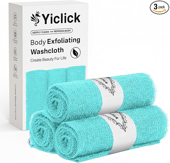 Yiclick Exfoliating Washcloth Towel, Japanese Exfoliating Wash Cloth, Korean Body Scrubber Exfoliator, Back Scrubber Washer for Shower Bath, Body Scrub African Net Sponge Loofah Luffa Colors