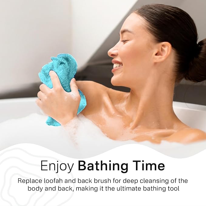- 【Extra-Long Design for Easy Back Scrubbing】 Struggling to reach your back with a brush? Our exfoliating back scrub towel makes it effortless. With an extended 34.5-inch length, it easily reaches your entire back, allowing for thorough exfoliation without twisting or straining.
