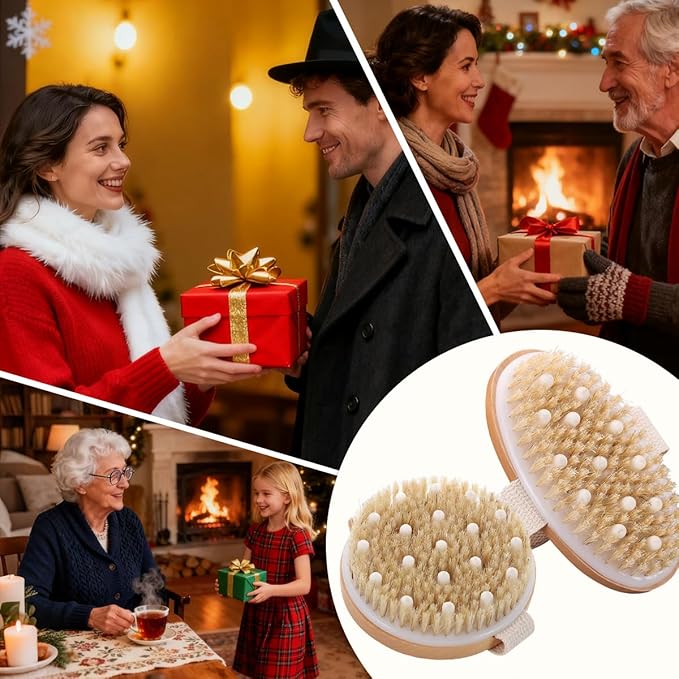 - ✅[Vegan Dry Brush]: Good for sensitive skin! The bristles are 100% vegan and cruelty free. It's perfect, not too rough or soft. It's a medium abrasiveness. The curve in the handle makes it easier to reach your back. Anti-slip design is help you to grab the handle in the bathroom, when your hands are wet. Plush our bonus hanger sticker, you can use the loop at the end to hang around for easy drying.