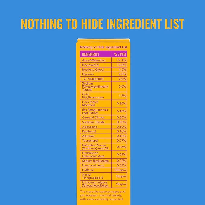 - POTENT FORMULA, POWERFUL INGREDIENTS: Antioxidant-rich, sustainably sourced Yerba Mate works to protect and nourish the skin around your eyes. While caffeine and acetyl tetrapeptide-5 encourage a reduction in swelling and hyaluronic acid helps to plump and firm!