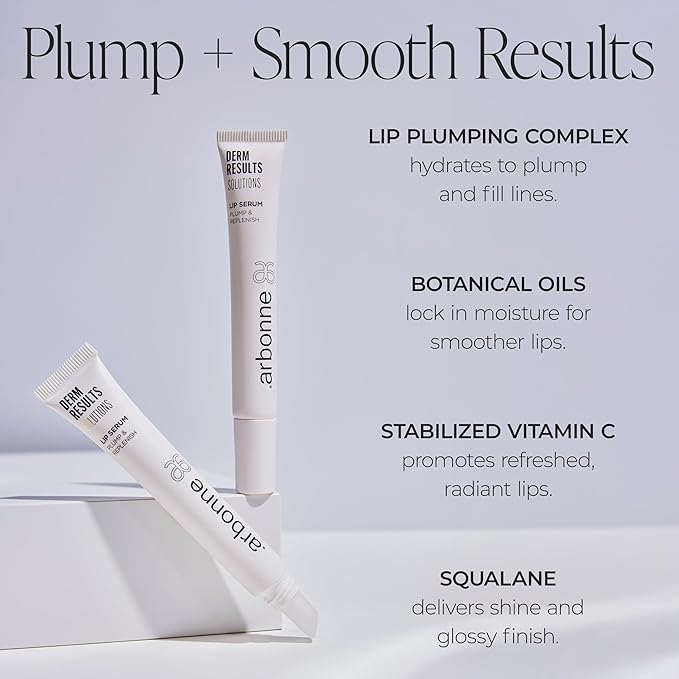 DermResults Solutions Lip Serum – Hydrating Plumping Serum for Women with Moisture-Rich Glossy Finish, Stabilized Vitamin C, Botanical Oils & Lip-Plumping Complex, 0.42 oz, by Arbonne.