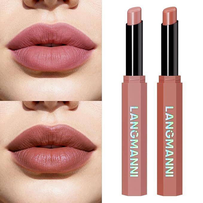 Jolilab 2Pcs Velvet Matte Lipstick Nude Matte Soft Dark Color Stick High Pigmented Long-Lasting Waterproof Lip Stick Lip Balm Beauty Cosmetics Gift for Women(#07+08)