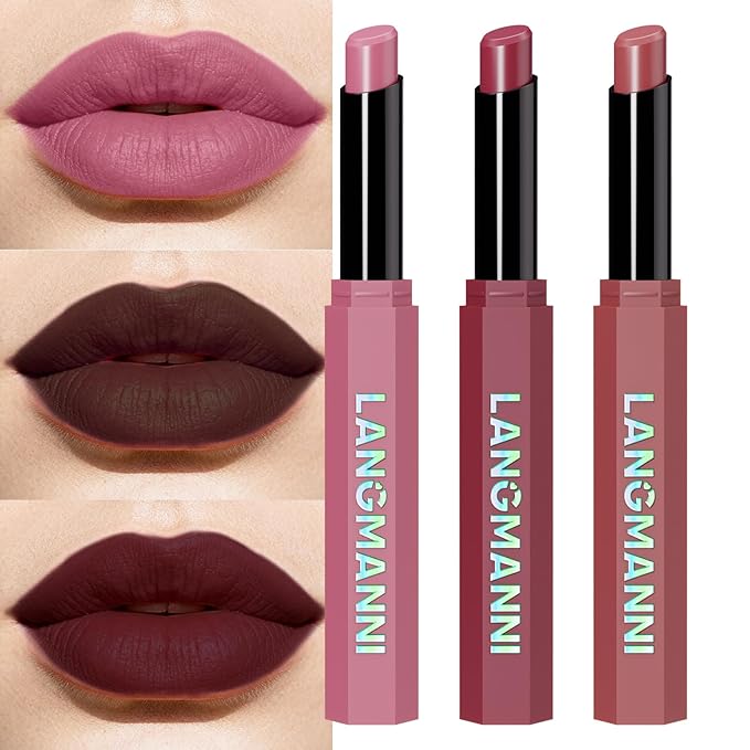 Jolilab 3Pcs Velvet Matte Lipstick Nude Matte Soft Dark Color Stick High Pigmented Long-Lasting Waterproof Lip Stick Lip Balm Beauty Cosmetics Gift for Women(Curated #3+11+12)