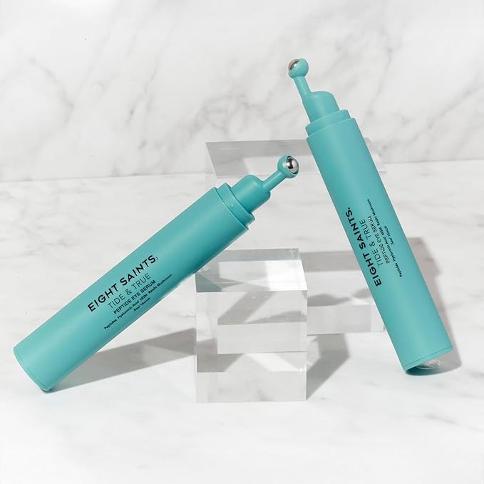 Eight Saints Tide & True Peptide Eye Serum for Puffiness & Wrinkles, Under Eye Roller Ball Treatment for Dark Circles & Fine Lines, Natural & Organic Eye Cream, 0.5 fl oz