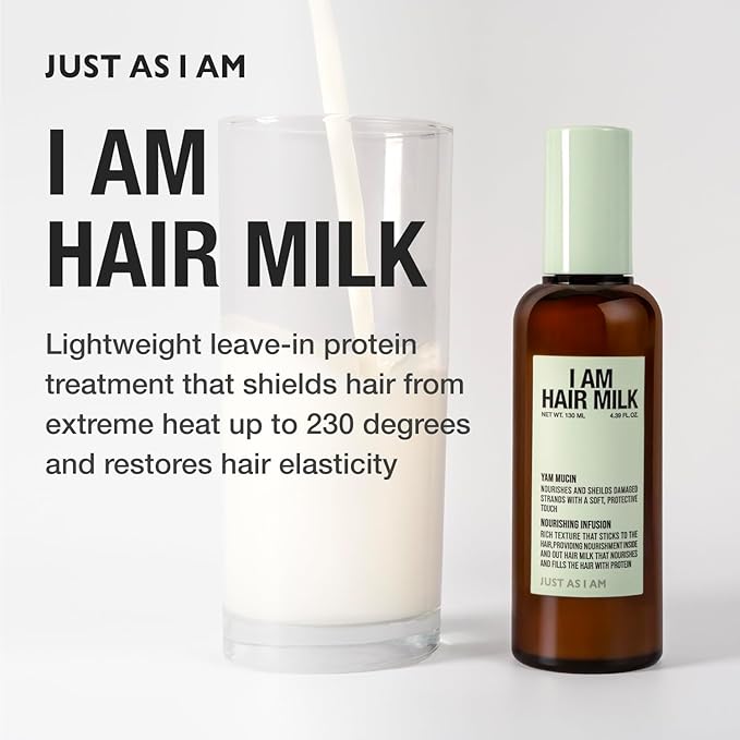 JUST AS I AM Hair Milk (4.39 fl oz) – Amino Acid Complex Heat Styling Care for Smooth, Soft, and Manageable Hair Finish