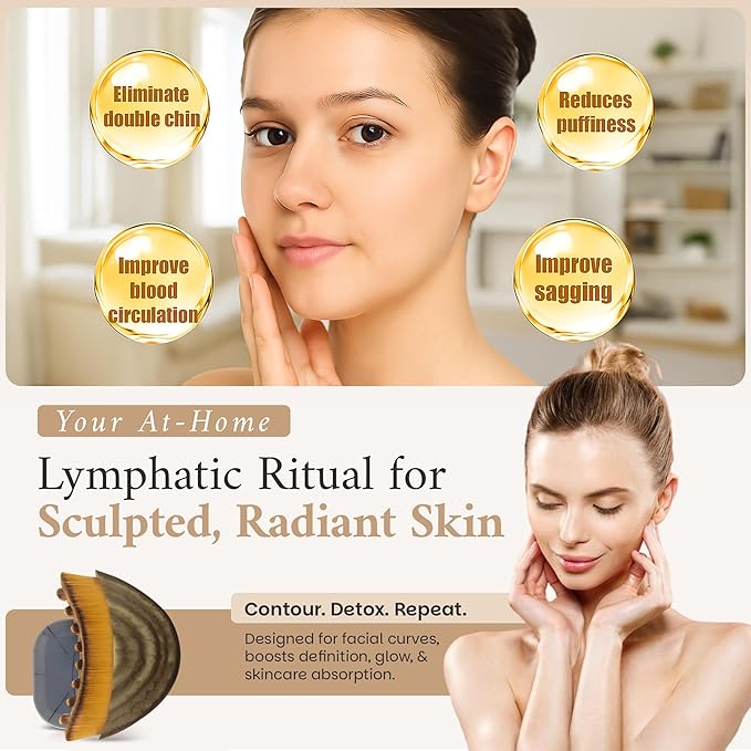 Lymphatic Contour Face Brush, Facial Brush for Lymphatic Drainage, Dry Lymphatic Massage Brush, Face Sculpting Brush, Contour Face Brush, Jawline and Chin Sculpting, Face Depuffer, Facial Tool