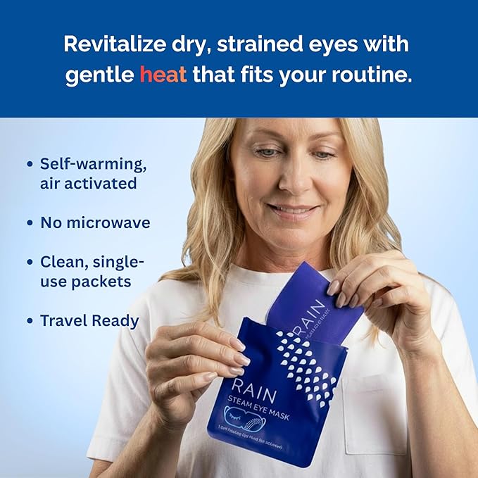 - Complete Care: Package includes 20 disposable warming eye masks; ideal heat eye compress for dry eyes, eye fatigue, and stye treatment; Rain self heating eye compress offers natural relief without medications